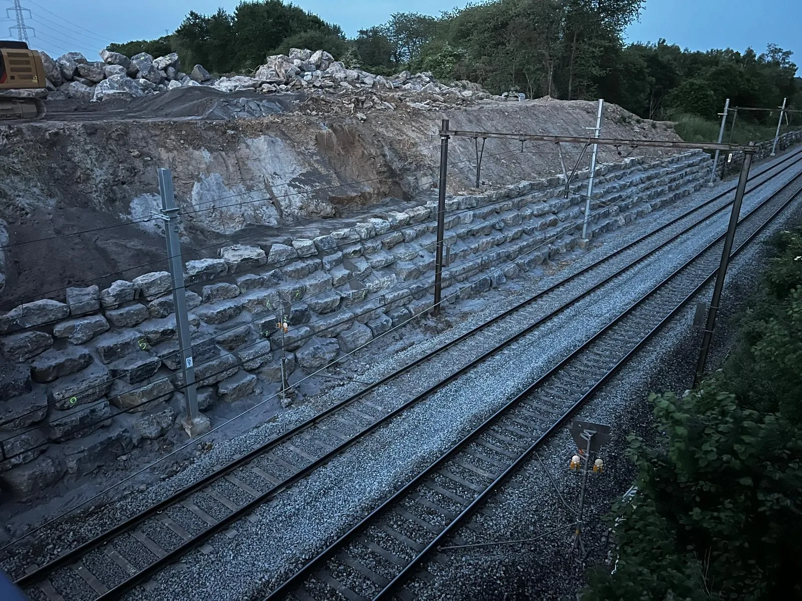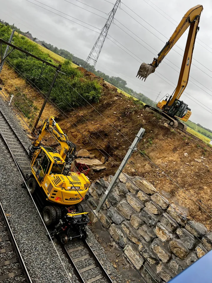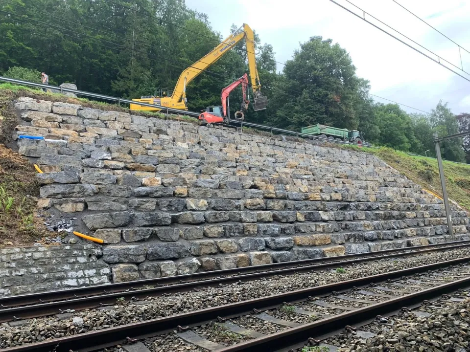 Les travaux ferroviaires font également partie de nos domaines d'activité. Nous intervenons sur différents chantiers liés aux infrastructures ferroviaires, que ce soit pour des aménagements de voies, des travaux de terrassement spécifiques ou des ouvrages de génie civil associés.